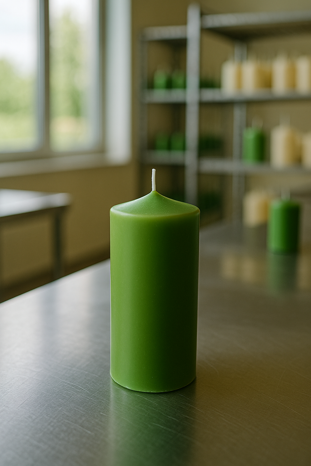 Coloranții pentru lumânări se topesc complet în ceară și oferă o culoare uniformă. Se recomandă coloranți profesionali, nu pigment praf pentru săpun. Dozaj: 0.1–1%, în funcție de intensitate.