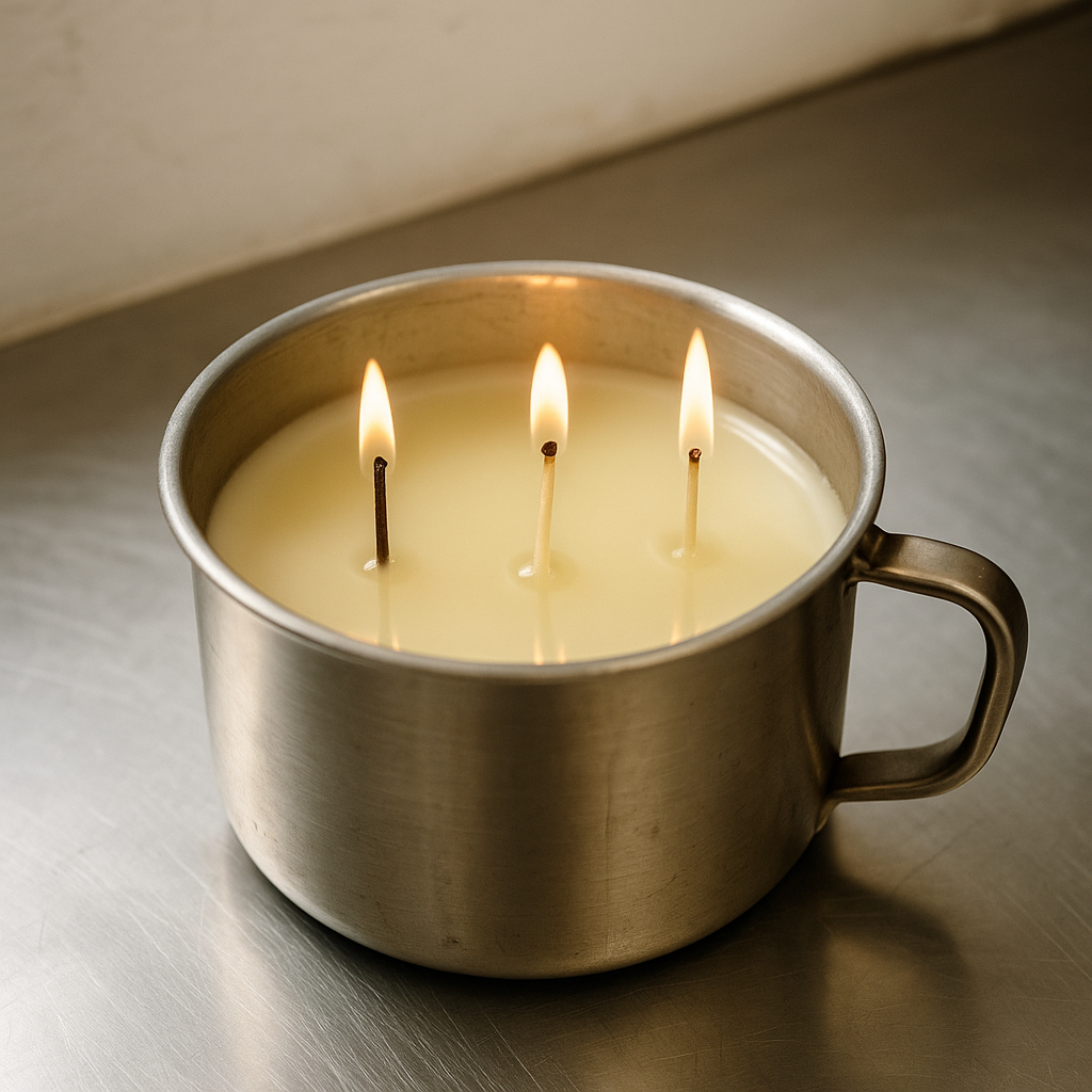 Un frig din acela aspru, care face aburul să se ridice din respirație, dar și din oala mare de inox în care topeam parafina. Pereții vibrau a tăcere și lumină caldă, iar pe masa de lemn aveam aliniate patru matrițe vechi, metalice, ca niște soldați obosiți.