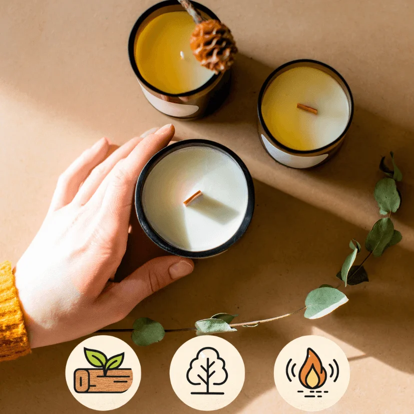 Structura fibrei lemnului și alimentarea cu ceară pot crea uneori un efect discret de trosnet („crackling”), asemănător lemnului care arde într-un șemineu. Acest efect depinde de tipul de ceară și de dimensiunea recipientului.