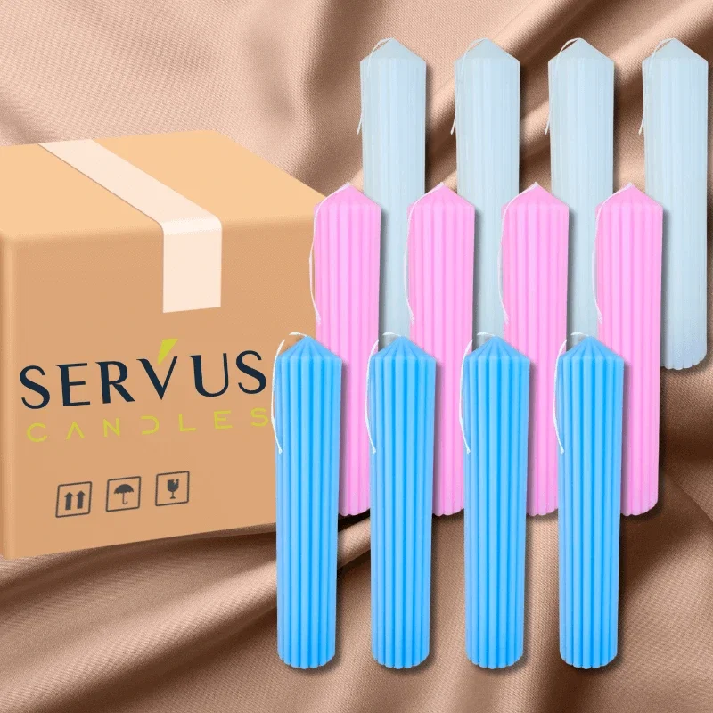 Eu sunt o lumânare canelată — delicată, colorată și lucrată manual cu drag. Am 35 cm înălțime și 6 cm diametru, proporții echilibrate pentru decoruri elegante și pline de personalitate.În acest bax venim 12 bucăți, în nuanțe pastelate de albastru, roz, bleu, crem, mov pal sau orice alta culoare disponibila in magazinul nostru. Și da, culorile se pot alege! Spune-ne combinația ta preferată și noi o pregătim cu grijă, în stilul Servus. Se poate lasa un mesaj la finalizare comanda, zona observatii!