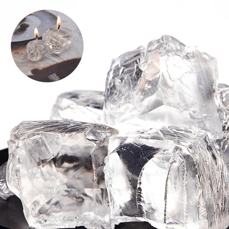 Am o textură cristalină și elastică, care îți permite să creezi lumânări unice — cu flori, scoici, pietricele, sau detalii suspendate ce par „îmbrățișate de lumină”.